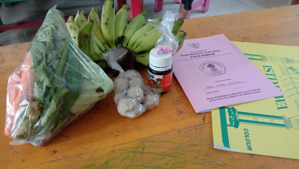 Hargorejo, Senin (21/12/2020) Meskipun kegiatan pembelajaran Paud dilakukan dengan BDR. Pendidik PP Harum Gunung Rego membagikan hasil BDR siswanya adapun pembagian Rapot dilaksanakan pada hari Kamis (17/12/2020)