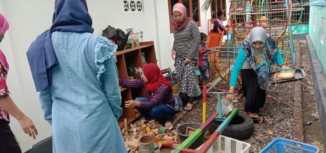 Selesai pembagian rapot acara dilanjutkan dengan kerja bakti dan sosialisasi kegiatan pembelajaran untuk 2021 serta pembagian PMT. Dan Alat belajar di rumah. (Wir)