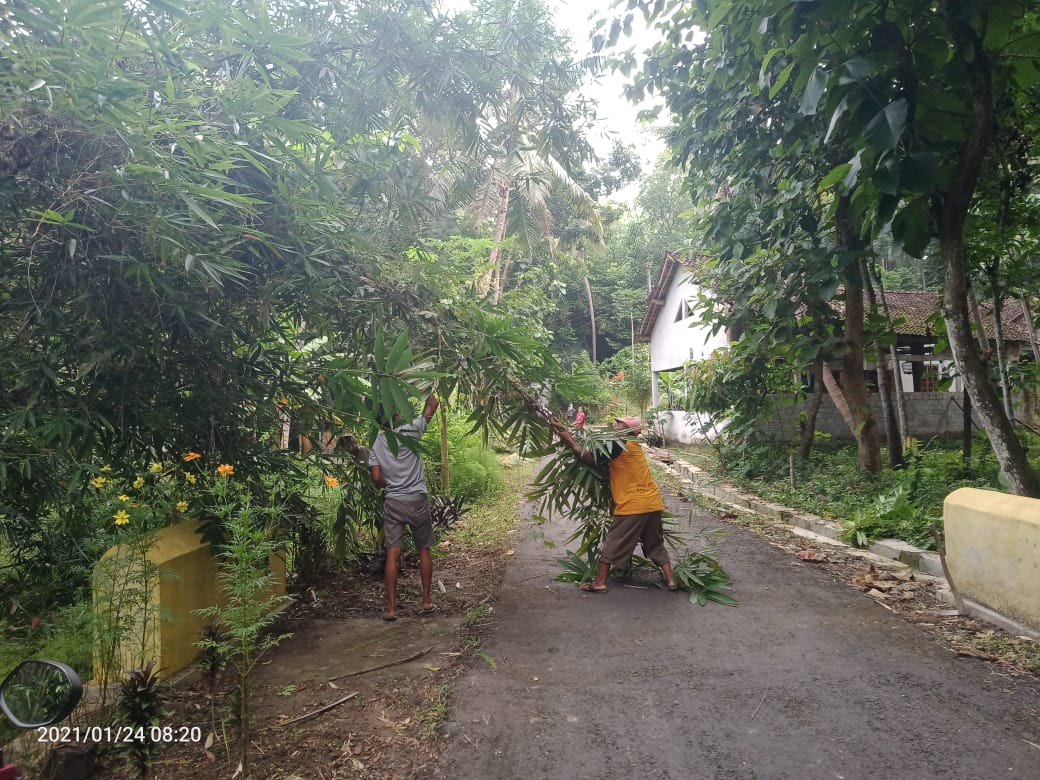 Hargorejo. Hari Minggu lalu (24/01/2021) sejumlah 25 warga Padukuhan Sindon melakukan kerja bakti bareng rabas-rabas pohon di pinggir jalan.