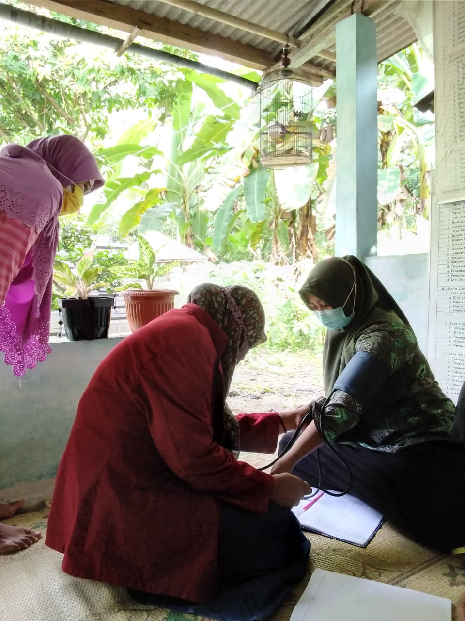 Di akhir pertemuan kegiatan dipantau oleh petugas kesehatan dari Puskesmas Kokap. Selain mengingatkan tentang prokes, petugas juga memantau jalannya kegiatan. (wir)