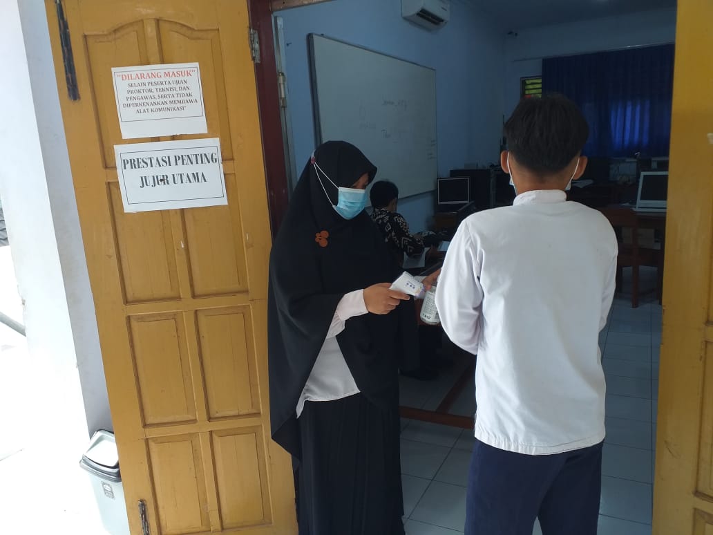Mengingat ujian sekolah masih di masa pandemi, maka pelaksanaan ujian sekolah dilakukan sesuai dengan protokol kesehatan. Sebelum memasuki ruangan, semua siswa wajib untuk cuci tangan, cek suhu tubuh, menjaga jarak di ruangan kelas dan memakai masker. Peserta ujian terdiri dari 20 siswa, hal ini sesuai dengan peraturan pemerintah untuk membatasi jumlah siswa di setiap ruangan selama ujian berlangsung.