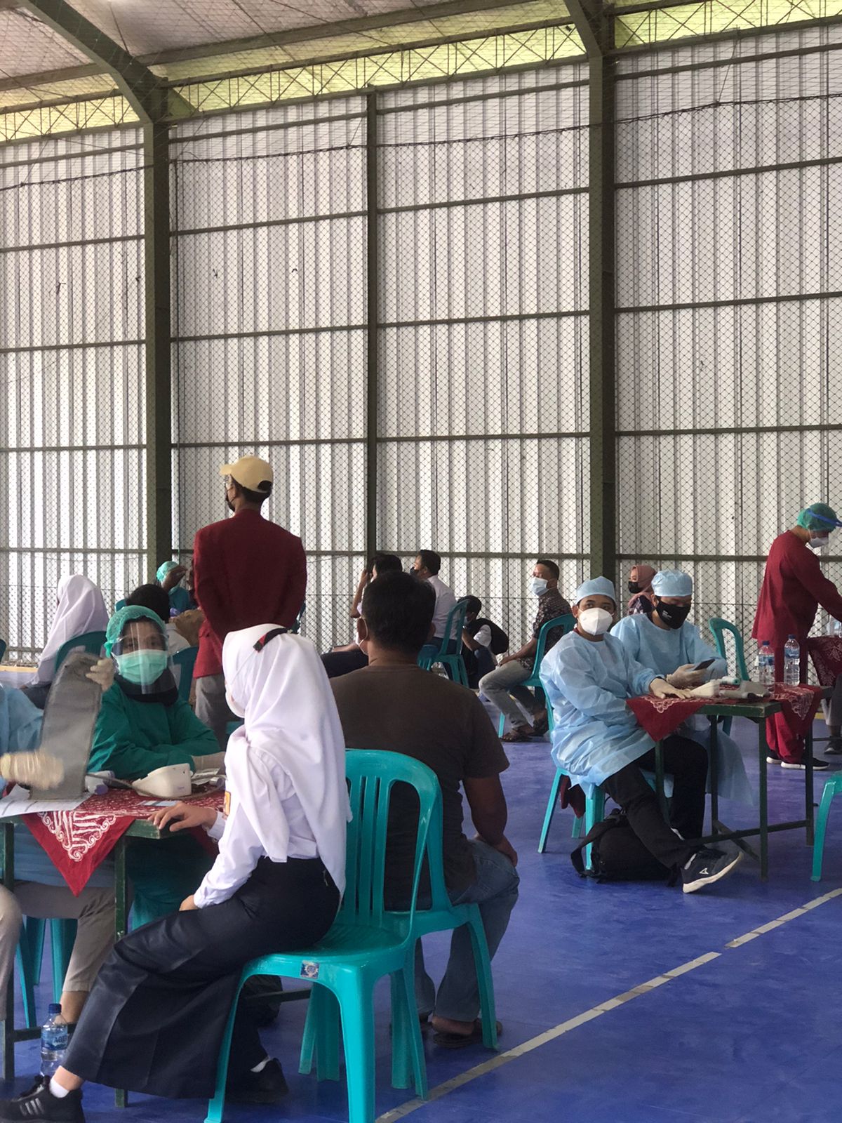 Hargorejo. Bertempat di lapangan Futsal Selo Timur Selasa (31/8/2021) ratusan warga Hargorejo mengikuti kegiatan vaksinasi. Kegiatan vaksinasi yang dilaksanakan mulai jam 8 pagi ini cukup menarik minat warga. Vaksinasi ini merupakan kerjasama antara Dinas Kesehatan Kulon Progo dan TNI yang didukung oleh Pemerintah Hargorejo. Sementara itu pihak lain yang mendukung kegiatan ini juga tampak kader kesehatan dan KKN UMY yang tengah melakukan tugas pengabdian ke masyarakat.