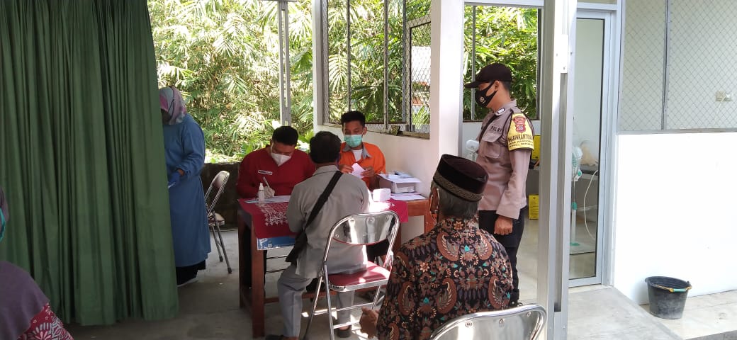 Hargorejo. Dalam rangka mendampingi kegiatan pemerintah dalam program vaksinasi, Bhabinkamtibmas Hargorejo Bripka Sunarto aktif memonitoring kegiatan vaksinasi di Puskesmas Kokap I. 110 warga yang terdiri dari warga masyarakat Kalurahan Hargorejo, Hargomulyo, Kalirejo, serta siswa SMA Kokap mengikuti kegiatan ini. Dengan adanya monitoring dari Bhabinkamtibmas diharapkan kegiatan bisa berjalan baik dan mengikuti protokol kesehatan.