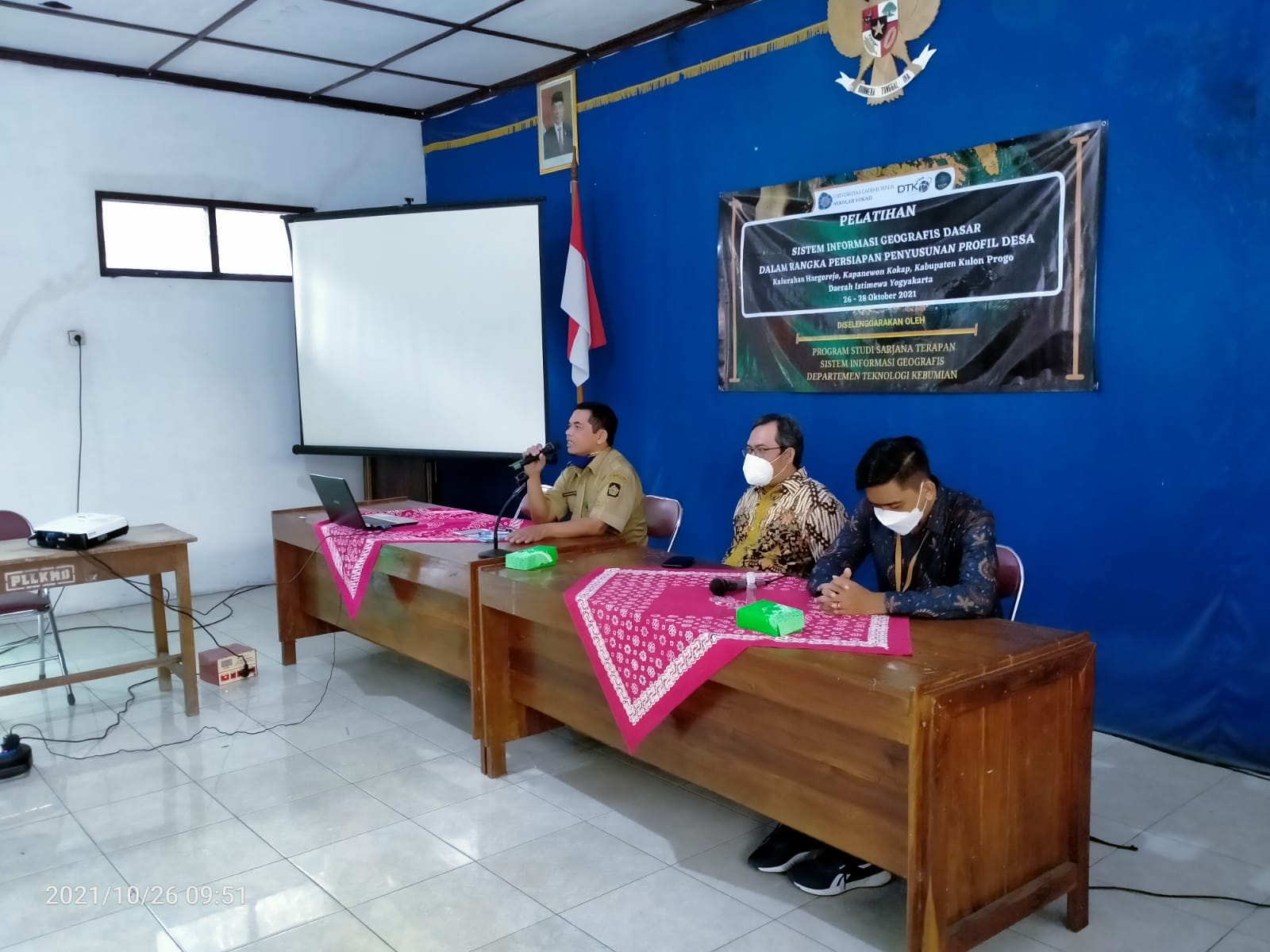 Hargorejo. Dalam rangka persiapan penyusunan profil kalurahan, Pamong Kalurahan yang terdiri dari Jaga baya, Carik, Ulu-ulu, Pangripta, beberapa Dukuh, petugas perpustakaan serta wakil dari BUMKal mengikuti pelatihan Sistem Informasi Geografis (SIG) Dasar. Kegiatan ini dilakukan di Aula Kalurahan Hargorejo. Pelatihan ini diselenggarakan oleh Program Studi Sarjana Terapan Sistem Informasi Geografis Departemen Teknologi Kebumian sekolah Vokasi UGM.
