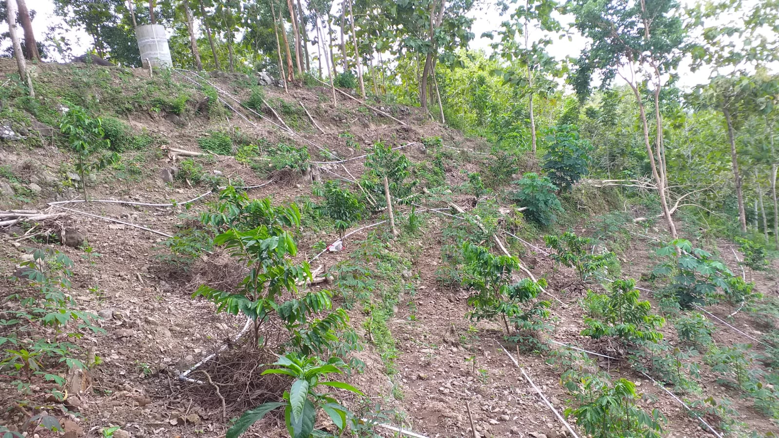 Pak Gimen memanfaatkan pekarangan yang berada diatasnya menjadi lahan tanaman yang ditanami dengan buah sirsak dan alpukat. Sedangkan sambil menunggu pohon buah tumbuh besar, pak Gimen menanam cabe rawit di sebelah lahan kosong tanaman buahnya. Dengan memanfaatkan pupuk kandang serta menyediakan tampungan air hujan untuk menyirami tanamannya, pak Gimen berharap dan berikhtiar semoga tanaman tersebut nantinya dapat tumbuh subur dan bisa berbuah dengan lebat.
