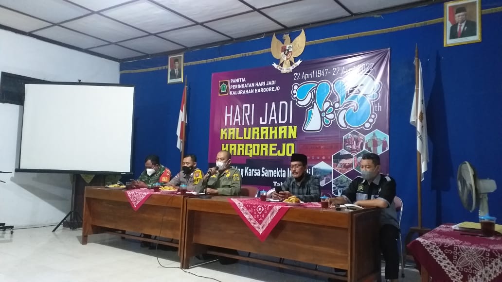 Pada hari Sabtu (30/04/2022), Pemerintah kalurahan Hargorejo mengadakan kegiatan peningkatan kapasitas dan pembinaan anggota Satlinmas Hargorejo. Acara yang dilaksanakan di balai Kalurahan Hargorejo ini dimulai pada pukul 20.30 WIB dan selesai pada pukul 22.23 WIB. Acara tersebut dihadiri oleh Lurah Hargorejo, bapak Bhekti Murdayanto, S.E., Jagabaya Hargorejo, bapak Suharyoto, TPK Jagabaya serta anggota Satlinmas, dengan pemateri kegiatan dari Kasi Linmas Satpol PP Kulon Progo, Bhabinkamtibmas Hargorejo, serta Babinsa Hargorejo.