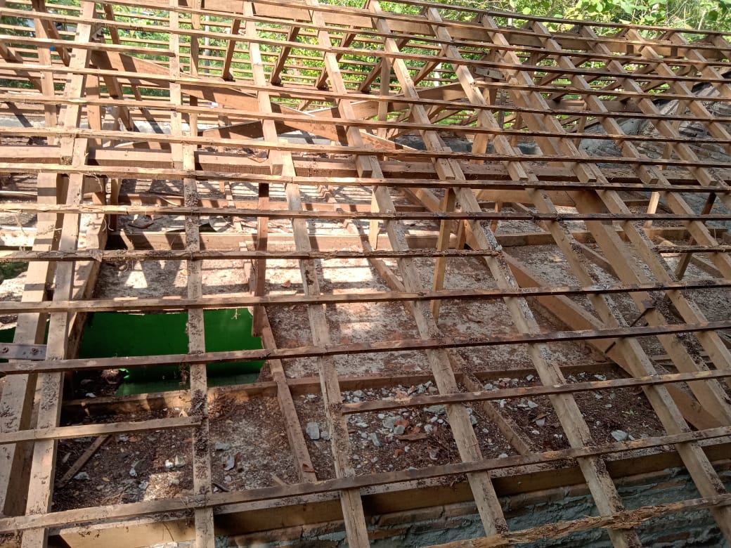 Gedung pelatihan PKK Kalurahan Hargorejo yang berada di wilayah Padukuhan Anjir saat ini masih dalam tahap renovasi. “Pemeliharaan gedung ini sudah dilakukan sebaik mungkin, tapi kalau sudah saatnya rusak, seperti atap maupun plafon memang harus diganti,” tutur bapak Saifudin selaku Dukuh Padukuhan Anjir, ketika kami temui pada hari Senin (27 Juni 2022), disaat sedang istirahat setelah selesai membantu pekerja memperbaiki gedung tersebut.