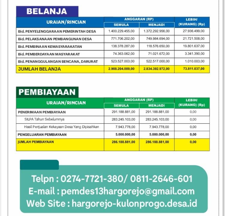 3. Pembiayaan Desa a. Penerimaan Pembiayaan b. Pengeluaran Pembiayaan