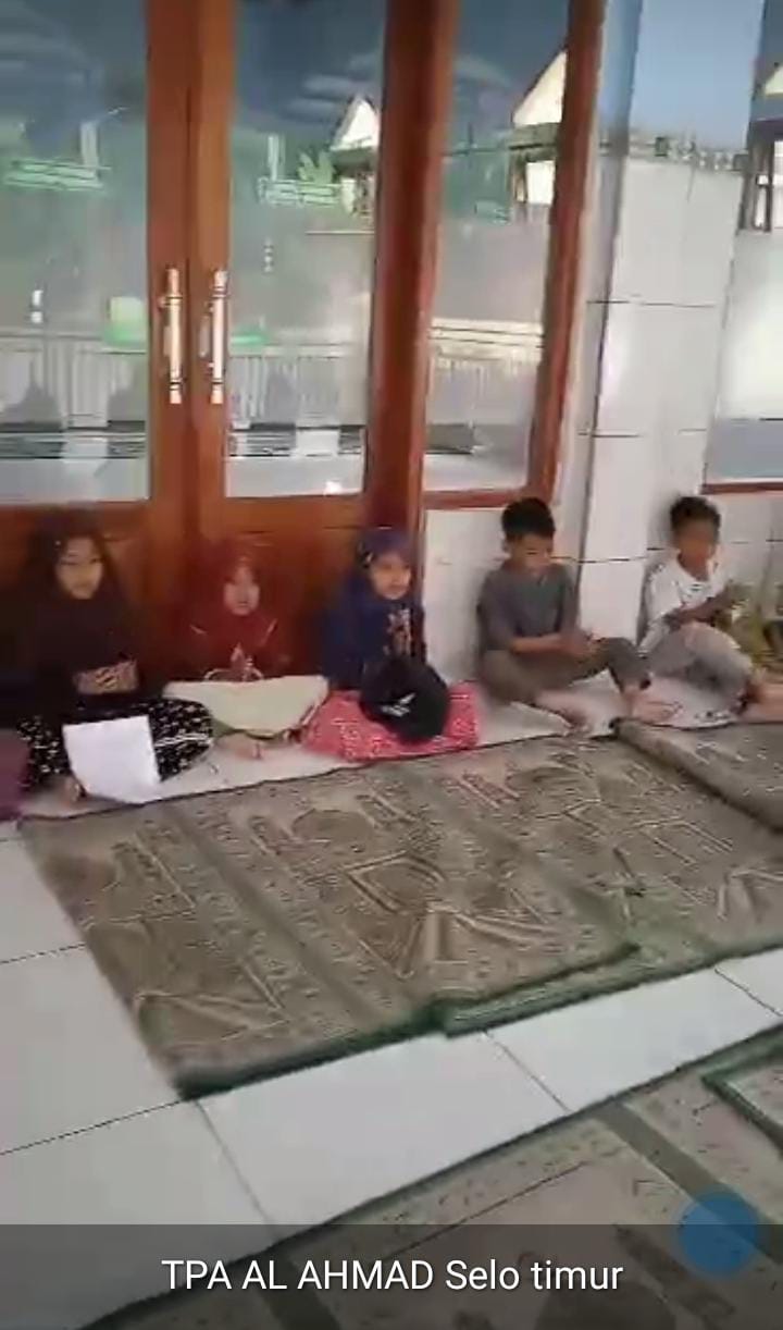 Sejumlah 33 orang santri putra dan putri tampak memadati Masjid Al-Ahmad yang terletak di RT.061 Padukuhan Selo Timur, Hargorejo pada Sabtu sore (09/12/2023). Santri tersebut tidak hanya berasal dari Padukuhan Selo Timur saja, akan tetapi juga berasal dari Selo Barat. Dipandu oleh Ustadz Sutrisno, Ustadz Langgeng Raharjo, dan Ustadzah Lina, kegiatan mengaji berlangsung mulai pukul 15.30 hingga 16.45 WIB. Kegiatan TPA (Taman Pengajian Al-Qur’an) ini biasa diadakan dua kali dalam seminggu, yakni pada Hari Rabu dan Sabtu.