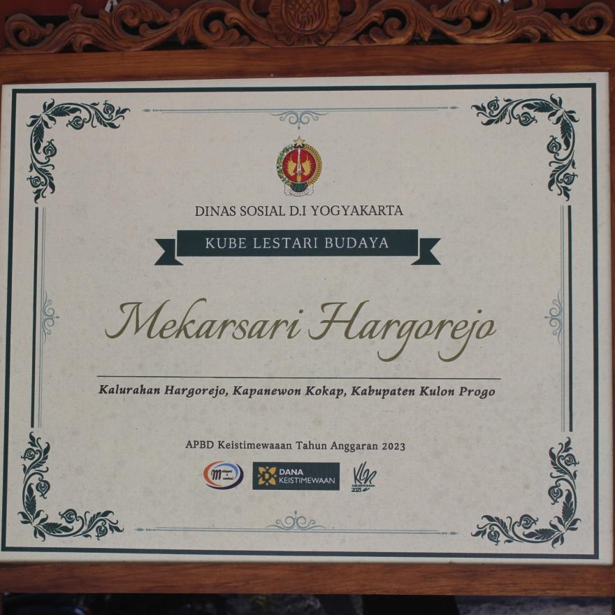 Usai mendengarkan sholawat, acara dibuka oleh ketua KUBE Lestari Budaya, Hartono pada pukul 12.00 WIB. Selain ucapan selamat datang kepada tim monitoring, ia juga memperkenalkan beberapa kesenian yang ada di Kalurahan Hargorejo, di antaranya Incling, Jathilan, Sloka, Karawitan, Angguk, Gejog Lesung dan masih banyak lagi. Beberapa kesenian tersebut juga telah mempunyai akta yang dikeluarkan oleh Kundho Kabudayan Kabupaten Kulon Progo.