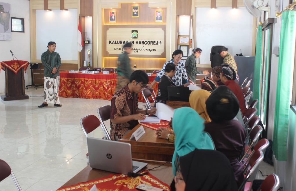 Saat penilaian tim juri dibagi ke dalam 5 meja untuk melakukan klarifikasi data akreditasi yang telah diterima. Nampak dengan penuh antusiasme Tim dari Kalurahan Hargorejo menyampaikan paparan tentang adat istiadat, bahasa dan aksara Jawa, kerajinan dan obat tradisional, kesenian, serta situs-situs bersejarah yang terdapat di Kalurahan Hargorejo. Setiap detil yang dipaparkan memberikan gambaran yang kaya tentang kekayaan budaya yang ada dalam Kalurahan Hargorejo saat ini.