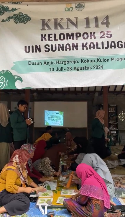 Pada Sabtu (03/08/2024) berlokasi di Pendopo Padukuhan Anjir, KKN 114 UIN Sunan Kalijaga Kelompok 25 Padukuhan Anjir melaksanakan pelatihan ecoprint dengan tema "Pemberdayaan Perempuan Kolaborasi Ecoprint dan Kearifan Lokal". Pelatihan tersebut berlangsung mulai pukul 08.00 WIB hingga sekitar 11.30 WIB. Pelatihan ditujukan kepada perwakilan ibu-ibu setiap RT sebanyak 3 orang. Dalam pelatihan tersebut, peserta pelatihan menjalani beberapa sesi, diawali dengan sambutan-sambutan. Sambutan-sambutan disampaikan oleh Ketua KKN, Ibu Dukuh Anjir, dan Dosen Pembimbing Lapangan KKN 114 kelompok 25. Ibu Dukuh Anjir dalam sambutannya juga menyampaikan maksud untuk mengaktifkan kembali PKK Padukuhan Anjir, sehingga pelatihan ini menjadi langkah awal untuk membentuk kepengurusan PKK dan anggota PKK dari masing-masing RT. Pelatihan ini juga dapat menjadi bekal program PKK Padukuhan Anjir pada pertemuan-pertemuan selanjutnya.