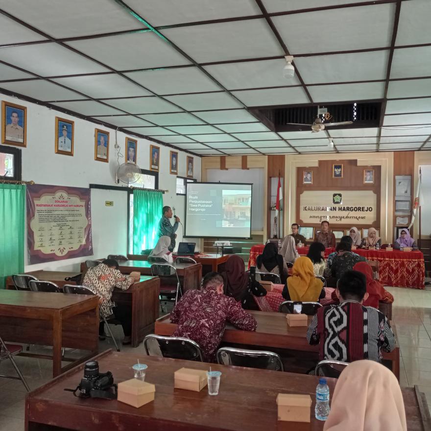 Selanjutnya, Ketua Pengelola Swa Pustaka Hargorejo, Suharyoto, menyampaikan presentasi profil Swa Pustaka yang berisi gambaran umum, visi dan misi, program unggulan, serta capaian-capaian strategis dalam pengembangan literasi masyarakat.